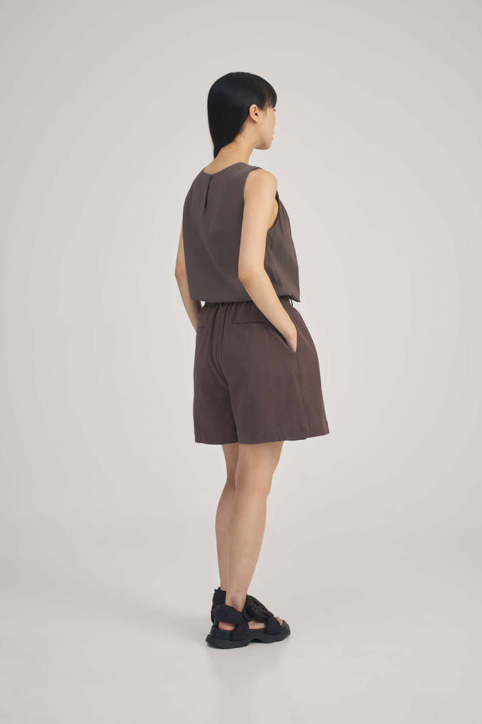 Featuring a V-neckline and interloop illusion gathers on the right, the Bonnie Top adds a sculptural twist to a minimalist silhouette. Crafted from 100% seersucker cotton, this sleeveless top offers breathable comfort with a refined edge. A twin sister to the Renata Dress, the Bonnie Top is a versatile staple designed for effortless elegance.