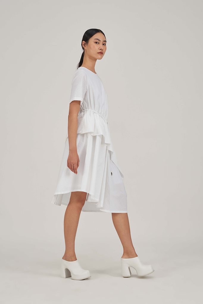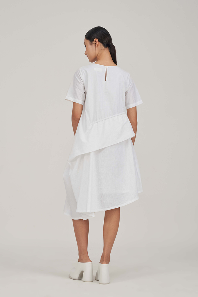 Elevate your wardrobe with the Briosa Dress, made from 100% breathable seersucker cotton. This charming piece features a flattering flare silhouette and short sleeves, perfect for warm-weather outings. The asymmetrical hemline adds a playful touch, while the folded details and adjustable drawstrings ensure a customizable fit. Whether for brunch or a casual outing, the Briosa Dress combines effortless style and comfort.
