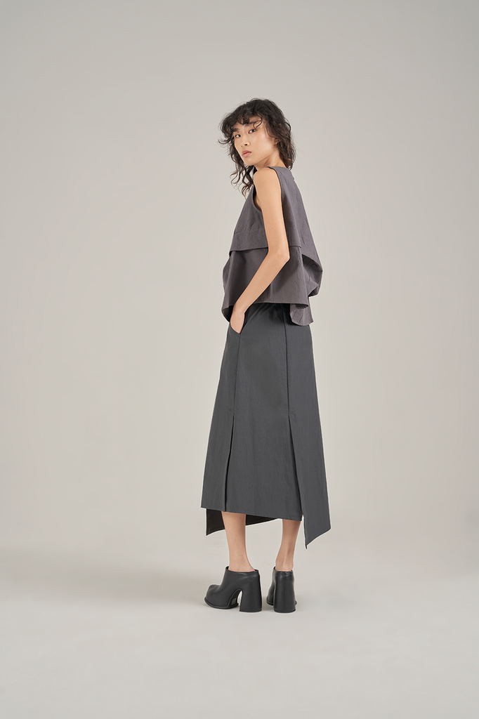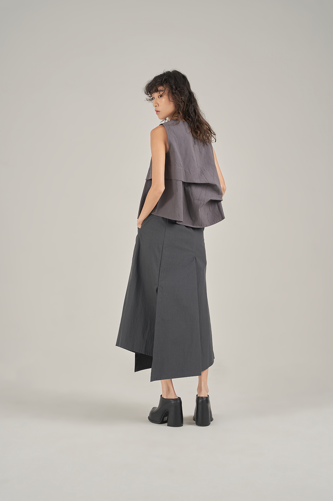Effortlessly chic with a touch of sculptural elegance, the Hera Top is crafted from 100% cotton with a textured finish for a refined yet breathable feel. Designed with a sleeveless silhouette and a classic round neckline, it features a folded pleat detail that creates a soft, organic shape. The flare cut adds fluidity and ease, making it a versatile piece for both casual and elevated styling.